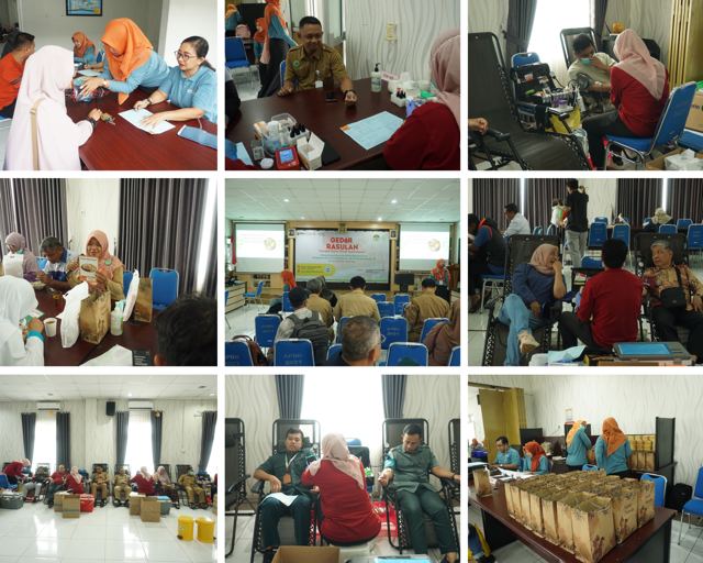 Acara GEDOR RASULAN berjalan dengan lancar dan berhasil mengumpulkan 153 kantong darah dengan rincian golongan darah O: 58 kantong, B:47 kantong, A: 38 Kantong, AB: 10 kantong. Kegiatan ini juga dirangkai dengan edukasi kesehatan tentang Gizi oleh Dwi Mulyanti, A.Md.Gz