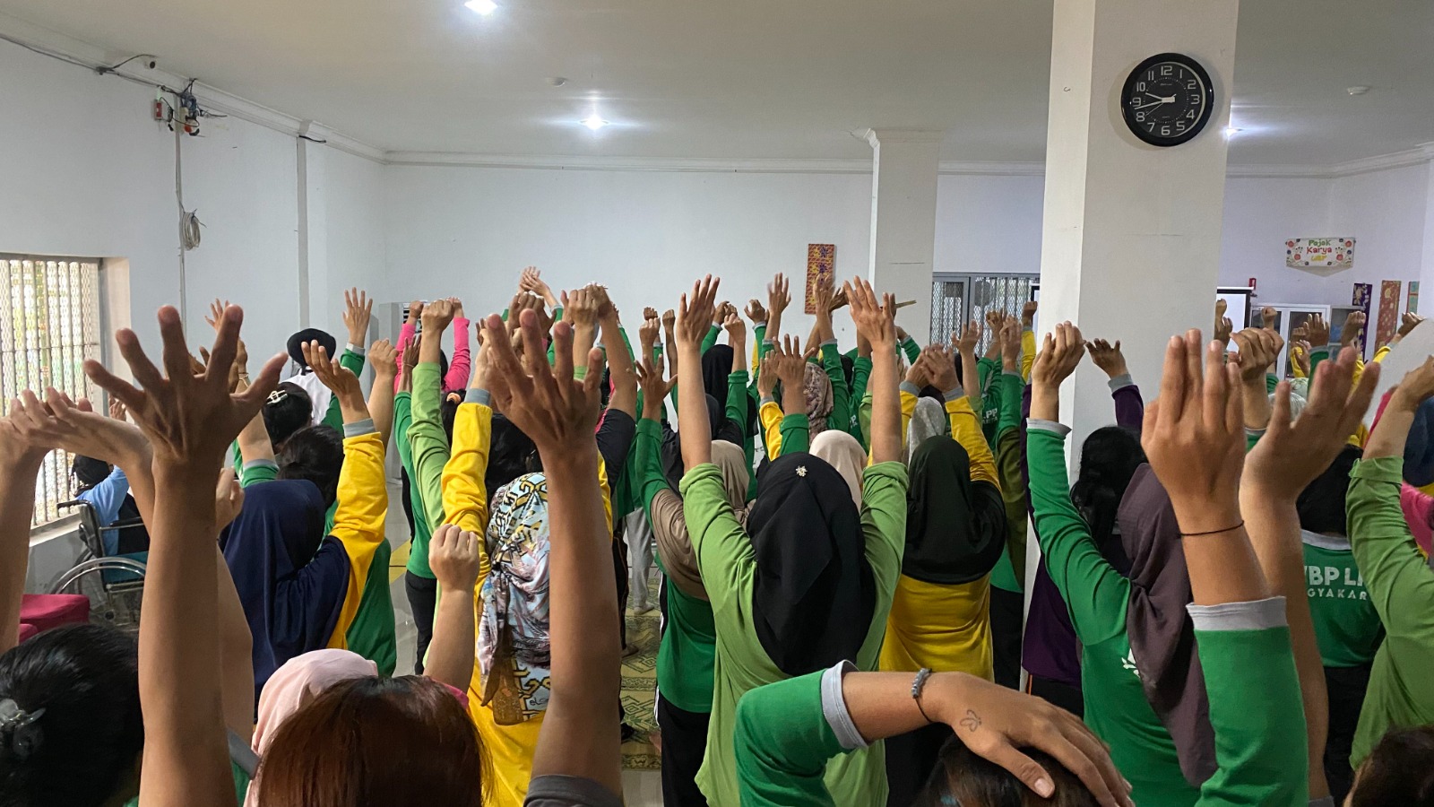 Usai sesi edukasi, peserta mengikuti skrining kesehatan fisik yang dipandu oleh tim fisioterapi dari RSUD Wonosari dan IFI Cabang Gunungkidul. Pemeriksaan dilakukan secara bergiliran dengan suasana hangat dan interaktif. Para warga binaan juga diajak mempraktikkan langsung beberapa latihan sederhana untuk menjaga kebugaran. Kegiatan ini merupakan bentuk nyata kolaborasi lintas sektor antara RSUD Wonosari, IFI Cabang Gunungkidul, dan Lapas Perempuan Yogyakarta dalam meningkatkan kesadaran akan pentingnya aktivitas fisik bagi kesehatan. Melalui kegiatan promotif dan preventif seperti ini, diharapkan warga binaan dapat memiliki pemahaman dan kebiasaan hidup sehat yang berkelanjutan. Kegiatan ditutup dengan sesi refleksi dan doa bersama, diakhiri dengan ajakan untuk menerapkan gerakan fisik sederhana secara rutin dalam keseharian.
